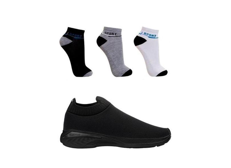 Combo Tênis Academia Esportivo Slip On 3 pares de Meias - NS SHOES, 3