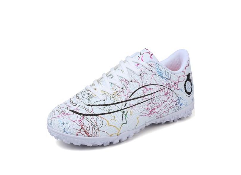 DISRATEBLU Sapatos de futebol para crianças, meninos, meninas, tênis de treinamento de futebol juvenil, terreno firme, grama atlética, uso ao ar livre, tênis de futebol profissional, Branco, 16