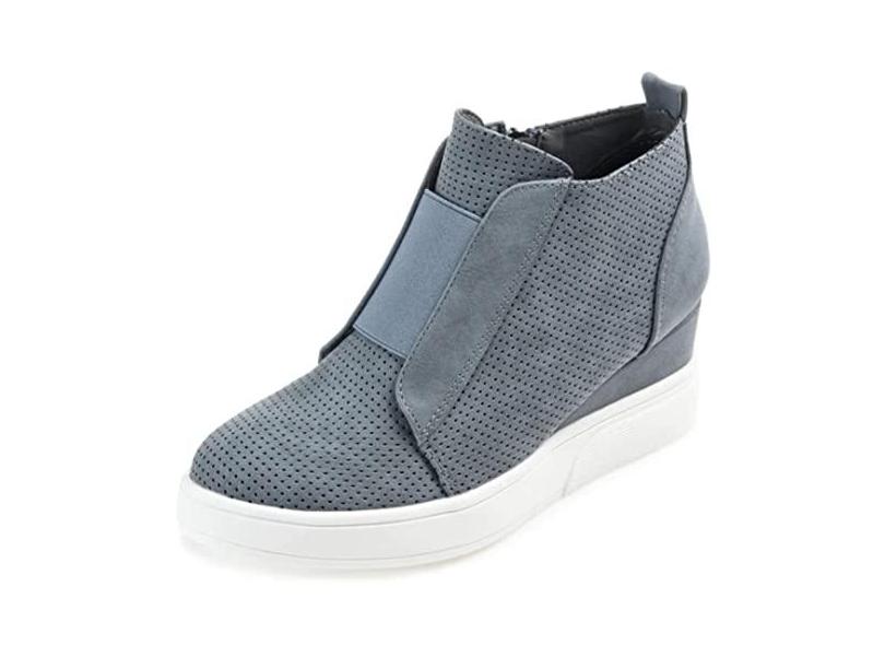 Journee Collection Womens Clara Comfort Wedge Heel Sneakers with Round-Toe and Perforated Details, Blue, 7.5