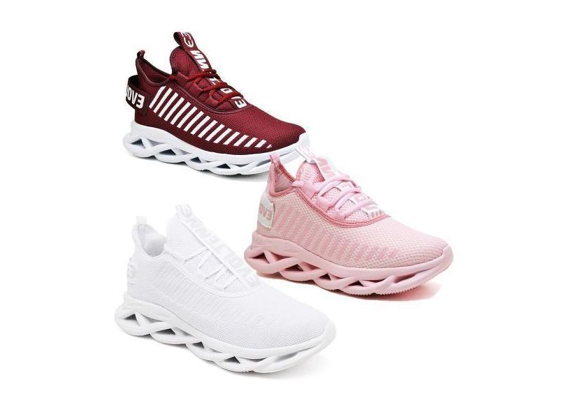 Kit 3 Tênis Feminino Evoltenn Esportivo Solado Trançado Rosa E Branco