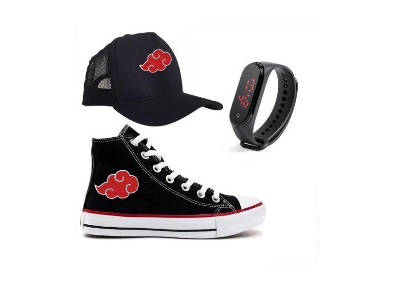 Kit Tênis Boné Relógio Do Naruto Nuvem Adulto Infantil - Milene Store,