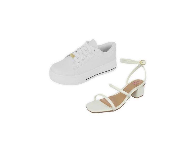 Kit Tênis Casual Branco + Sandália Salto Bloco Baixo Bellinda Shoes, B