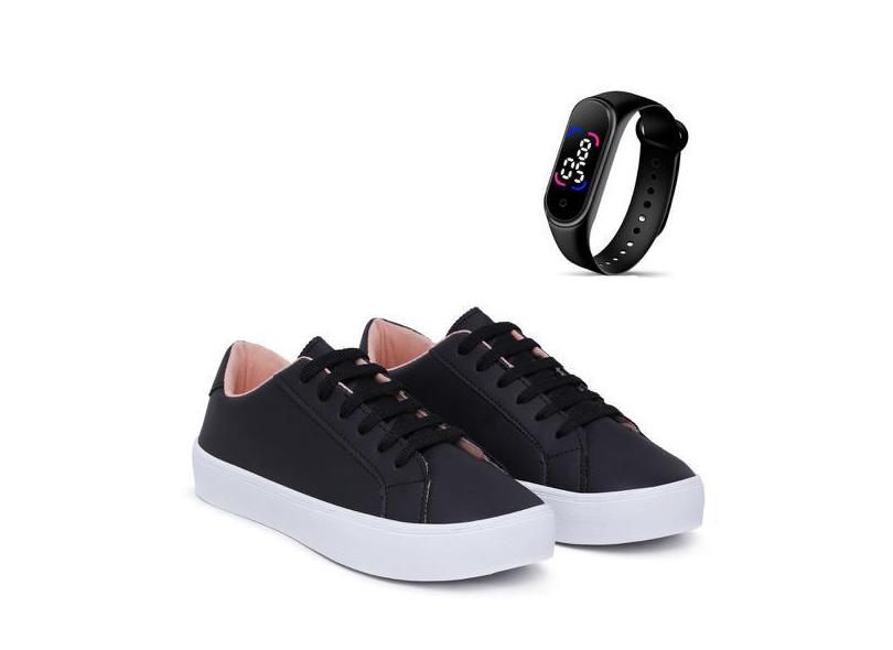 Kit Tênis Casual Feminino Soft Feet Leve E Macio + Relógio Touch Digit