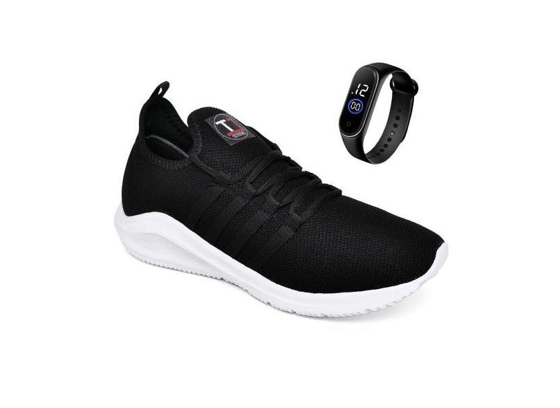 Kit Tênis Esportivo Academia Caminhada Ultra Leve Conforto + Relógio D