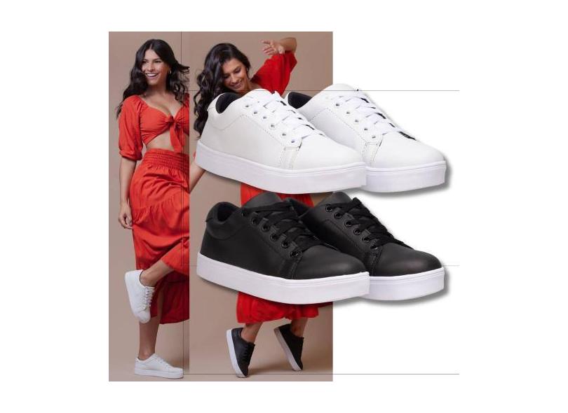 Kit Tênis Feminino Casuais, Um Branco + Outro Preto, Essenciais Para U