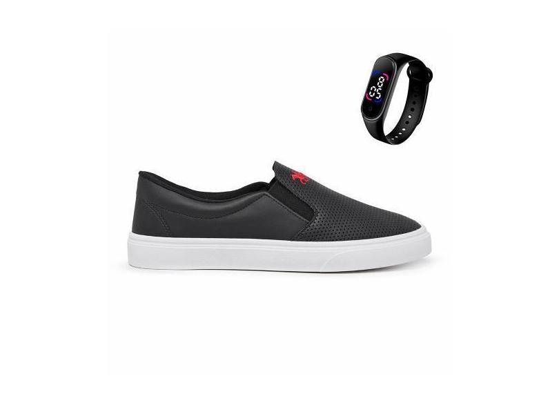 Kit Tênis Iate Polo Legítimo Slip On Masculino + Relógio Digital Touch