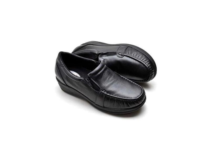 Mocassim Feminino Ortopédico Couro Sapato Tenis Com Ziper Social Casual Enfermagem Confortavel Leve-Feminino