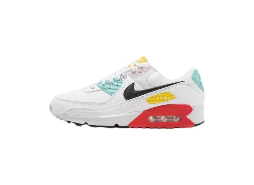 Nike Tênis feminino Air Max 90 (FZ3622-100, branco/espuma rosa/carmesim brilhante/preto), Branco/espuma rosa/carmesim brilhante/preto, 35