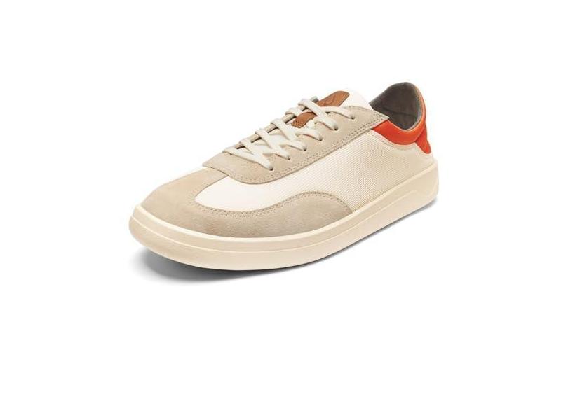 OLUKAI Punini Tênis masculino para uso diário, design clássico com cadarço e palmilha acolchoada, sola de borracha confortável e com aderência molhada, durável e de suporte, Branco/Laranja derretida,