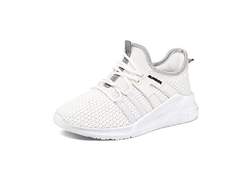 RUNSIDE Meninas Tênis Crianças Leve Respirável Tênis Rendas-Up Tênis de Corrida Atlético para Criança/Criança Pequena/Criança Grande Branco