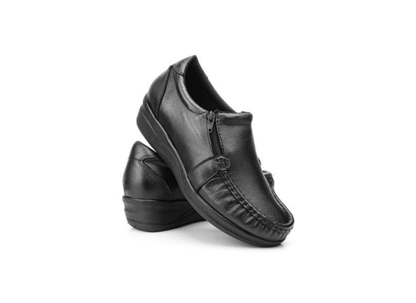 Sapato Mocassim Enfermagem Feminino Ortopédico Couro Tênis Zíper Anti Stres Conforto Cano Baixo-Feminino