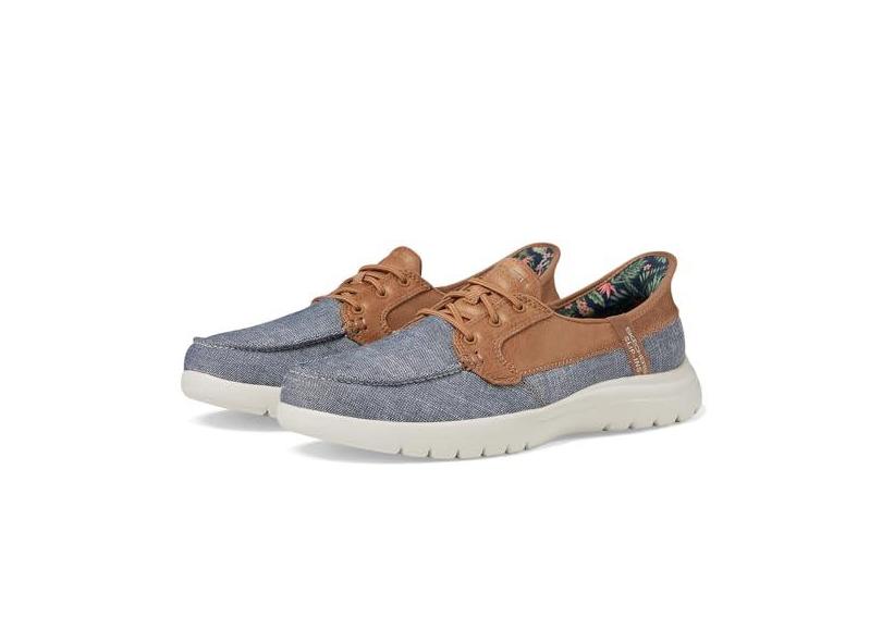 Skechers Tênis náutico feminino sem uso das mãos sem cadarço em movimento Flex-Coastal Sky, Azul/branco, 37