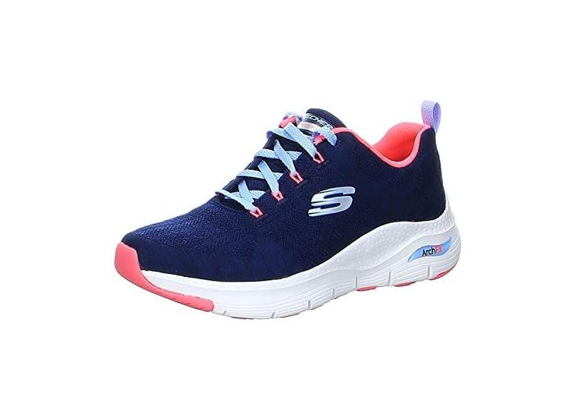 Skechers Women's Arch FIT Sneaker, NVY Knit/Htpnk Trim