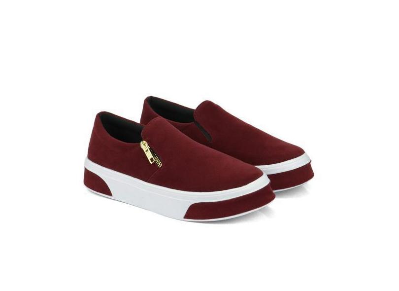 Slip On Feminino em Camurça Com Solado Antiderrapante Tênis Casual Con