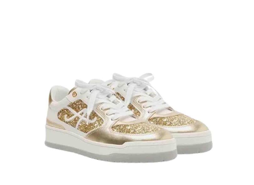 Tênis Arezzo Couro A Bordado Street Brilho Dourado/Branco-Feminino