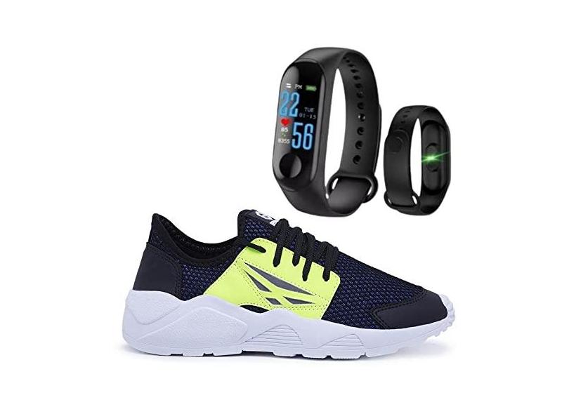 Tênis Caminhada Corrida Leve Macio Confortável Fitness Academia + Pulseira Inteligente M3 - Azul - 42