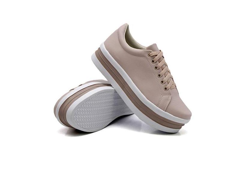 Tênis Casual Liso Feminino com Cadarço Sola Leve Alta Mulher Fashion D