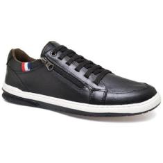 Tênis Casual Masculino com Zíper Lateral Confortável e Macio em Couro Legitimo Francês-Masculino