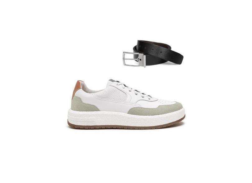 Tênis De Couro Democrata Masculino Denim Drake Pulse 600101 + Cinto Dupla Face-Masculino