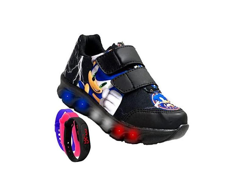 Tenis De Led Masculino Calce Facil Infantil Meninos Estilo Original + Relogio Cor:Preto;Tamanho:26