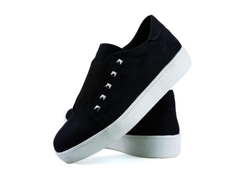 Tênis Elástico Preto Feminino Salto Plataforma Social Esportivo Solad
