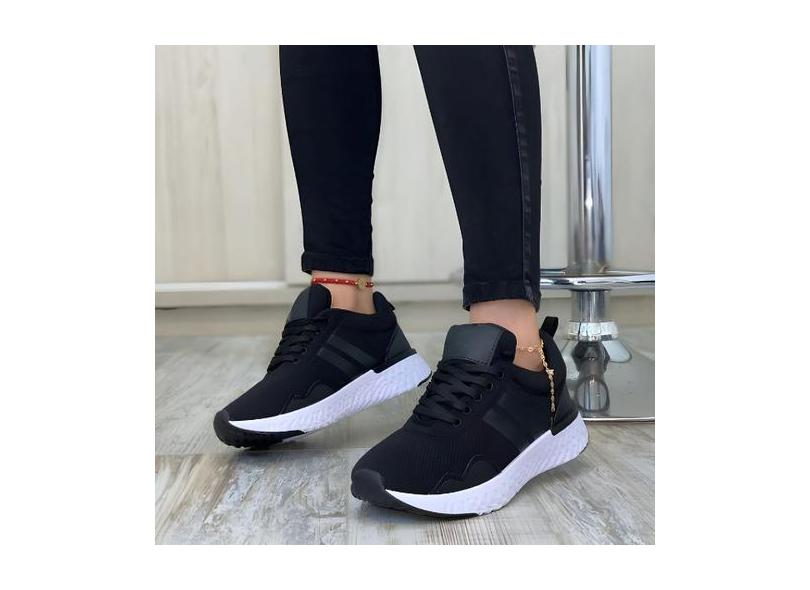 Tênis Feminino Academia Caminhada Ginastica Leve - T&C, Preto, Preto,