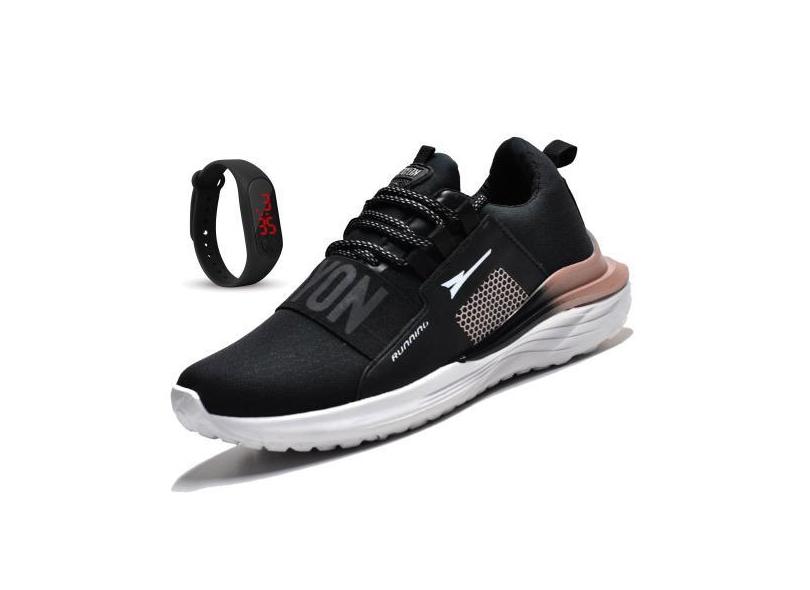 Tenis Feminino Academia Original Caminhada Barato R1406 - Preto/Nude +