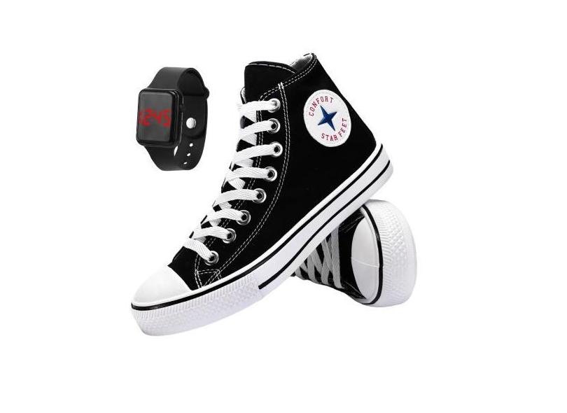 Tenis Feminino Casual Cano Medio Macio Com Relogio Led - Sapatoway
