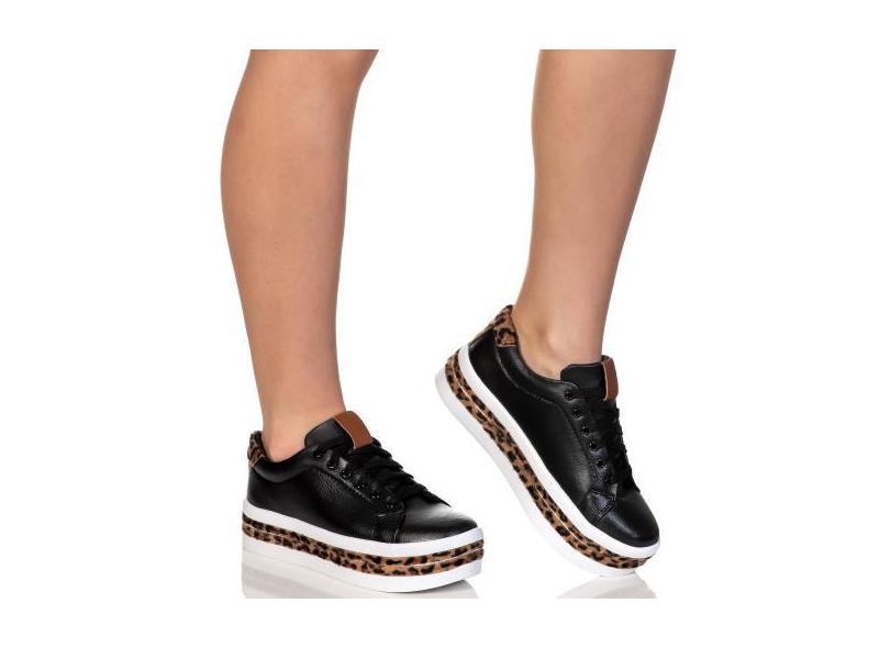 Tênis Feminino Salto Plataforma Animal Print Preto Onça - Shop Estilo
