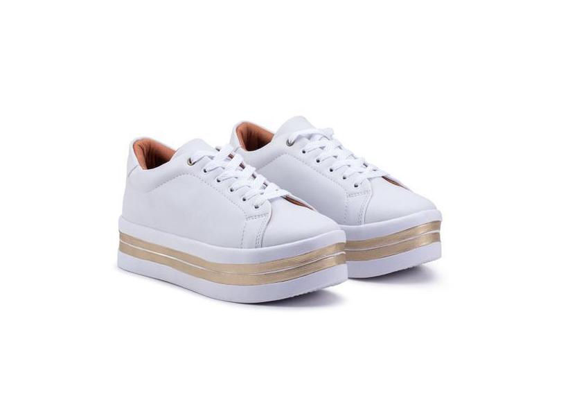 Tenis Feminino Salto Plataforma Branco Dourado - Shop Estilo Shoes, Mu