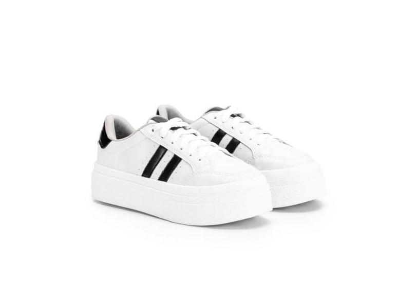 Tenis Feminino Sapatenis Sola Alta Listras Original Casual (Branco/preto, BR, Adulto, Numérico, 39)