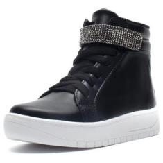 Tênis Infantil Feminino Casual De Cano Alto Com Tira De Strass Brilhante-Feminino