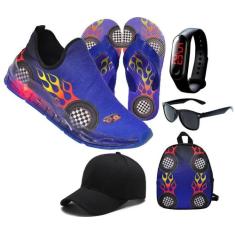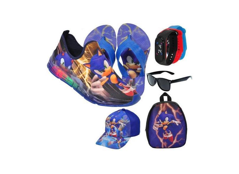 Tênis Led Slip On Masculino Carrinho/Sonic Infantil Luzinha + Mochila