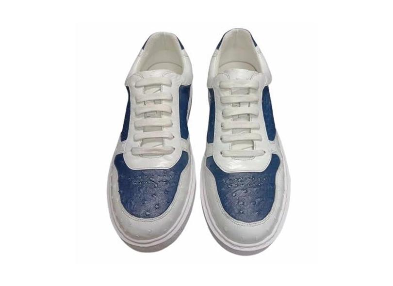 Tênis masculino autêntico de pele de avestruz real, azul, verde, cores mistas, casual, couro exótico, masculino, cadarço, Azul, 38