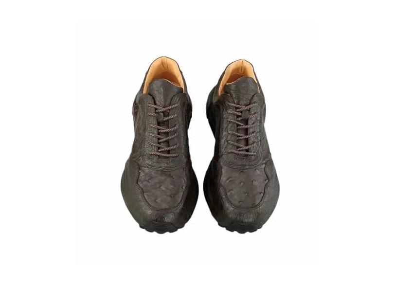 Tênis masculino de cano alto autêntico autêntico pele de avestruz genuíno couro exótico feminino casual macio cadarço sapatilha para caminhada, Marrom, 38