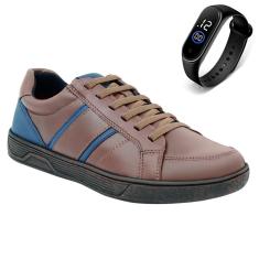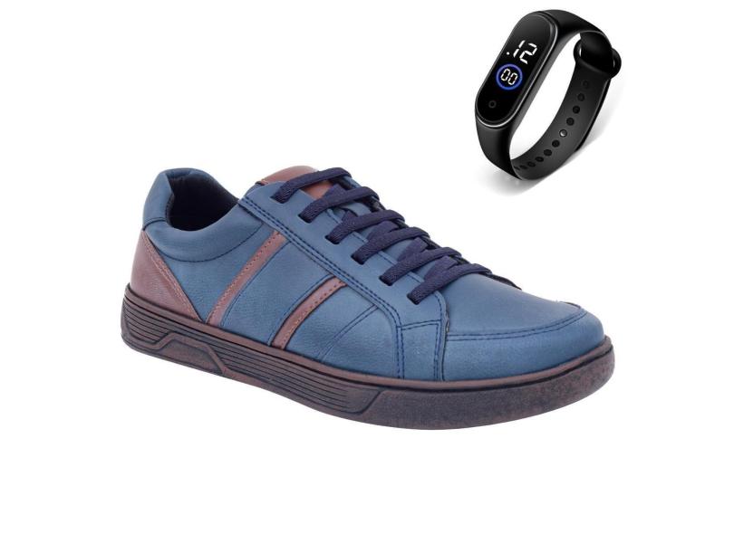 Tênis Masculino Esporte De Amarrar Leve Conforto Dia a Dia + Relógio-Masculino