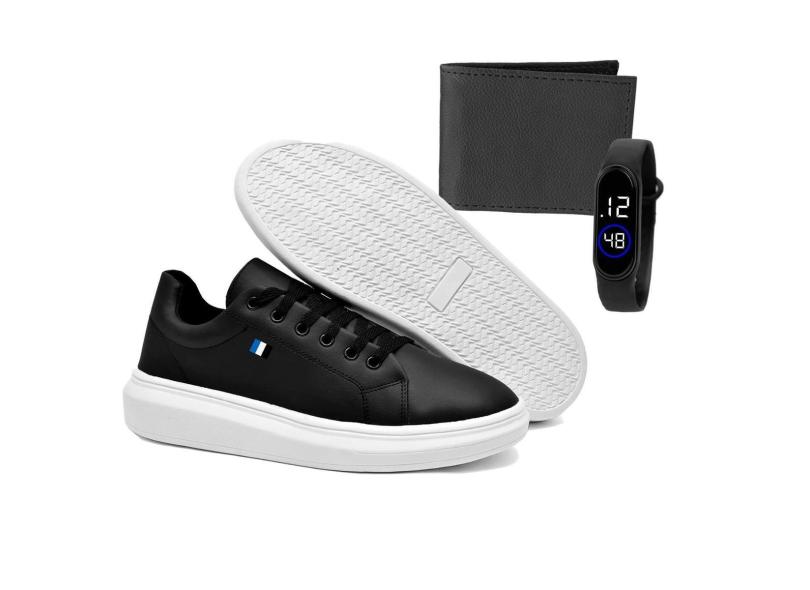 Tênis Masculino SB Streatwear Casual Kit Com Relógio Digital e Carteira-Masculino