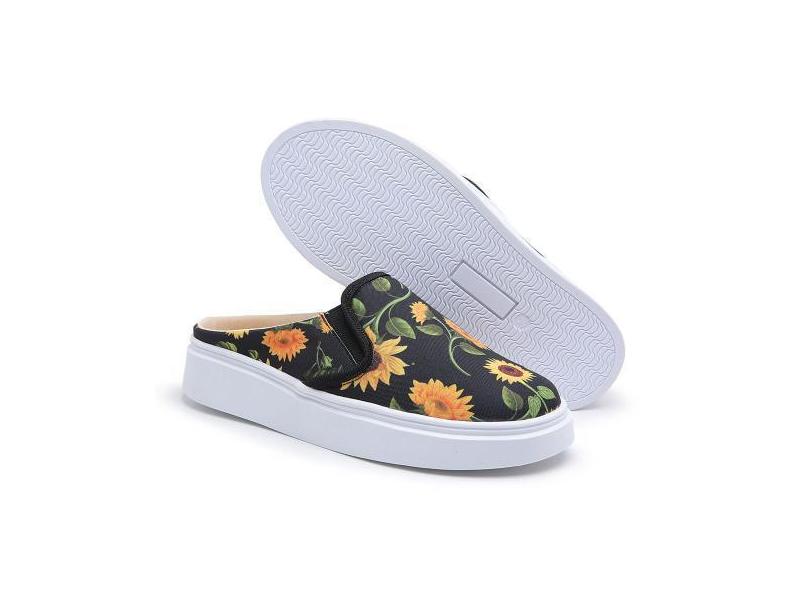 Tênis Mule Feminino Slip On Calcanhar Aberto Babuche Girassol - Zafrem