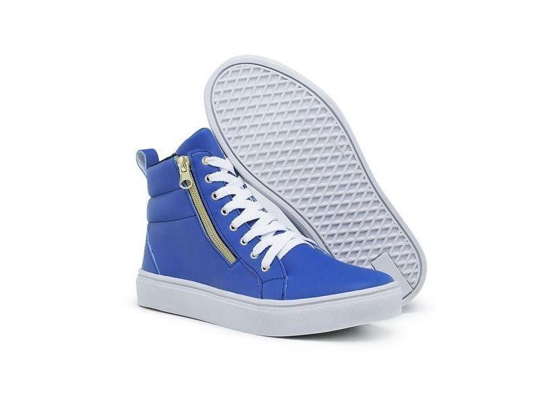 Tênis Sneaker Cano Alto Feminino Cadarço Zíper Estilo Macio Azul - APA