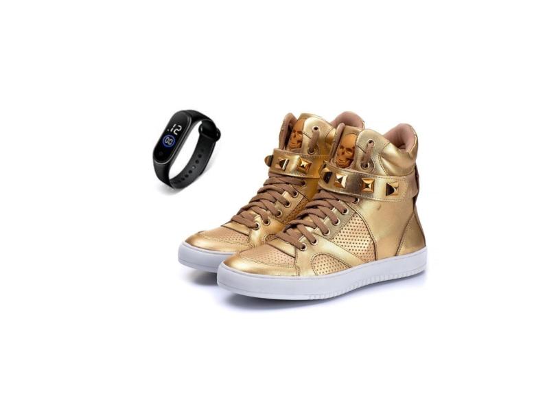 Tenis Sneaker Fitness Feminino Botinha Academia Couro + Relógio-Feminino