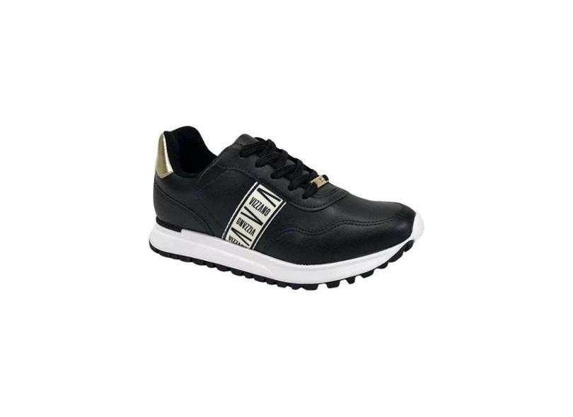 Tênis Vizzano Preto Branco Bege Faixa Pelica Feminino Nº 34 ao 40-Feminino