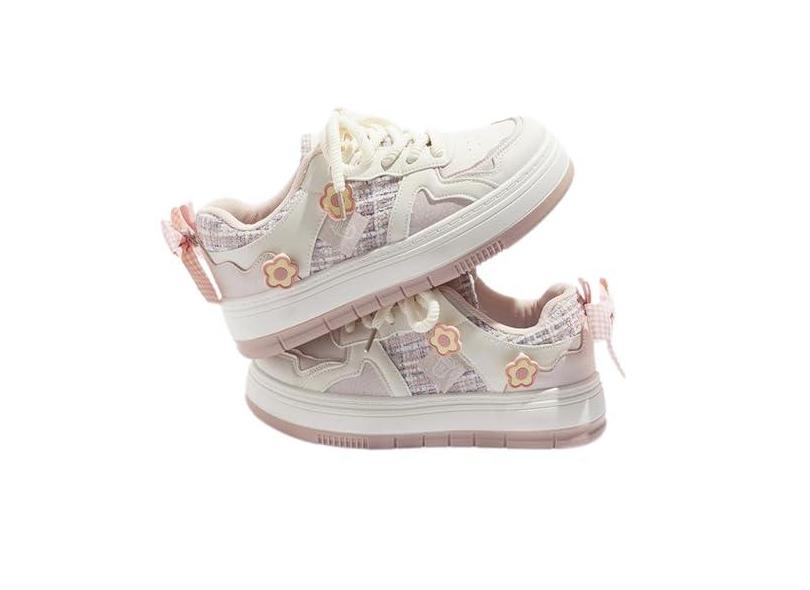 Y2K Cute Shoes Tênis de caminhada feminino grosso rosa flor laço detalhes EUA 4-8, rosa, 36