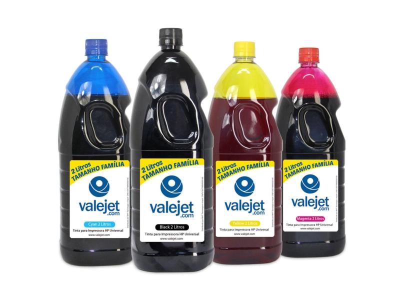 Kit 4 Tintas Para Impressora Hp Universal Cmyk 2 Litros Valejet