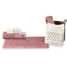 Jogo de Banho Petit Poá 5 Peças Toalha de Banho Rosto e Tapete 100% Al