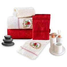 Jogo de Banho Ponto Russo 5 Peças Toalha de Banho Rosto e Tapete 100%