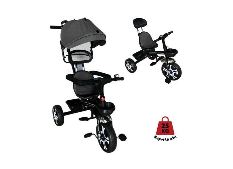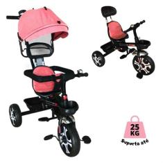 Triciclo Infantil Com Proteção Capota Pedal E Haste De Empurrar 25Kg -