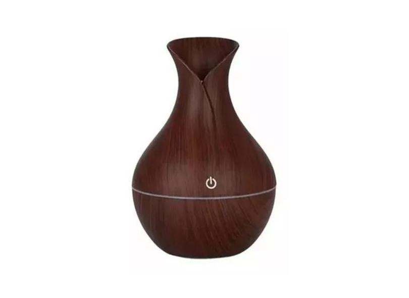 Umidificador Aromatizador Ultrasonico Tulipa Madeira Escura Usb Com Le