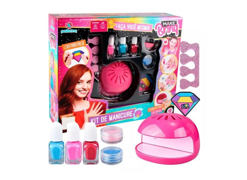 Kit Manicure Infantil 3 Esmaltes Secador com Lâmpada Lixa Make Brinq